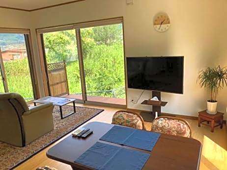 Located on the highest floor of this property, this suite features Okinawan-style tatami (woven-straw) flooring and a built-in TV. The suite features a terrace which surrounds the unit, boasting panoramic views of Moun Yufu and Yufuin. The private bathroom features a bathtub made from Japanese cypress. An open-air bath is also available.